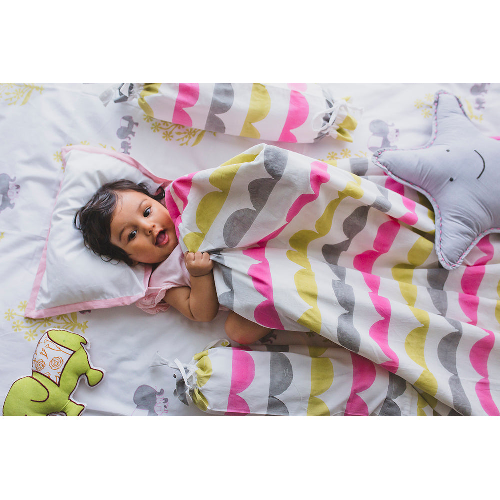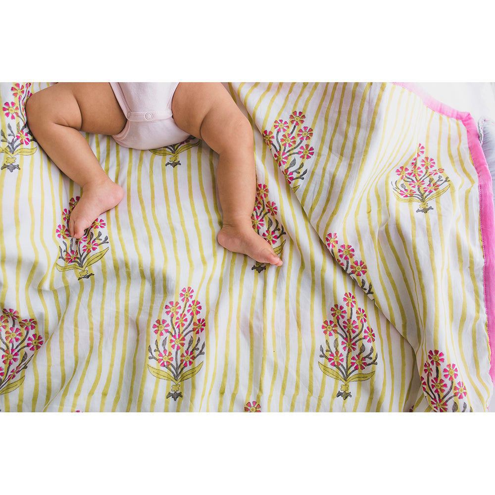 Snuggle together with your little one in our blanket that takes you right back to memories of mammas godi. A print so versatile, along with our 3 layers of soft muslin might just tempt you to get one for yourself too. Twin with your munchkin in our elle print, which takes you into a world of familial bonds.