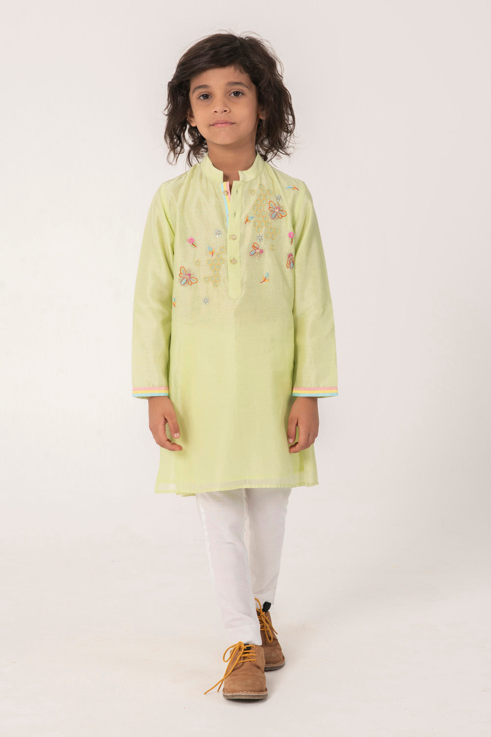 Bee Hive Embroidered Kurta in Fresh Green captures the sweetness of summer days.