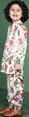 Cream bomber style kurta in Modal Satin, featuring an all over gulmohar bloom print and zip detailing, paired with matching printed jogger style trousers.