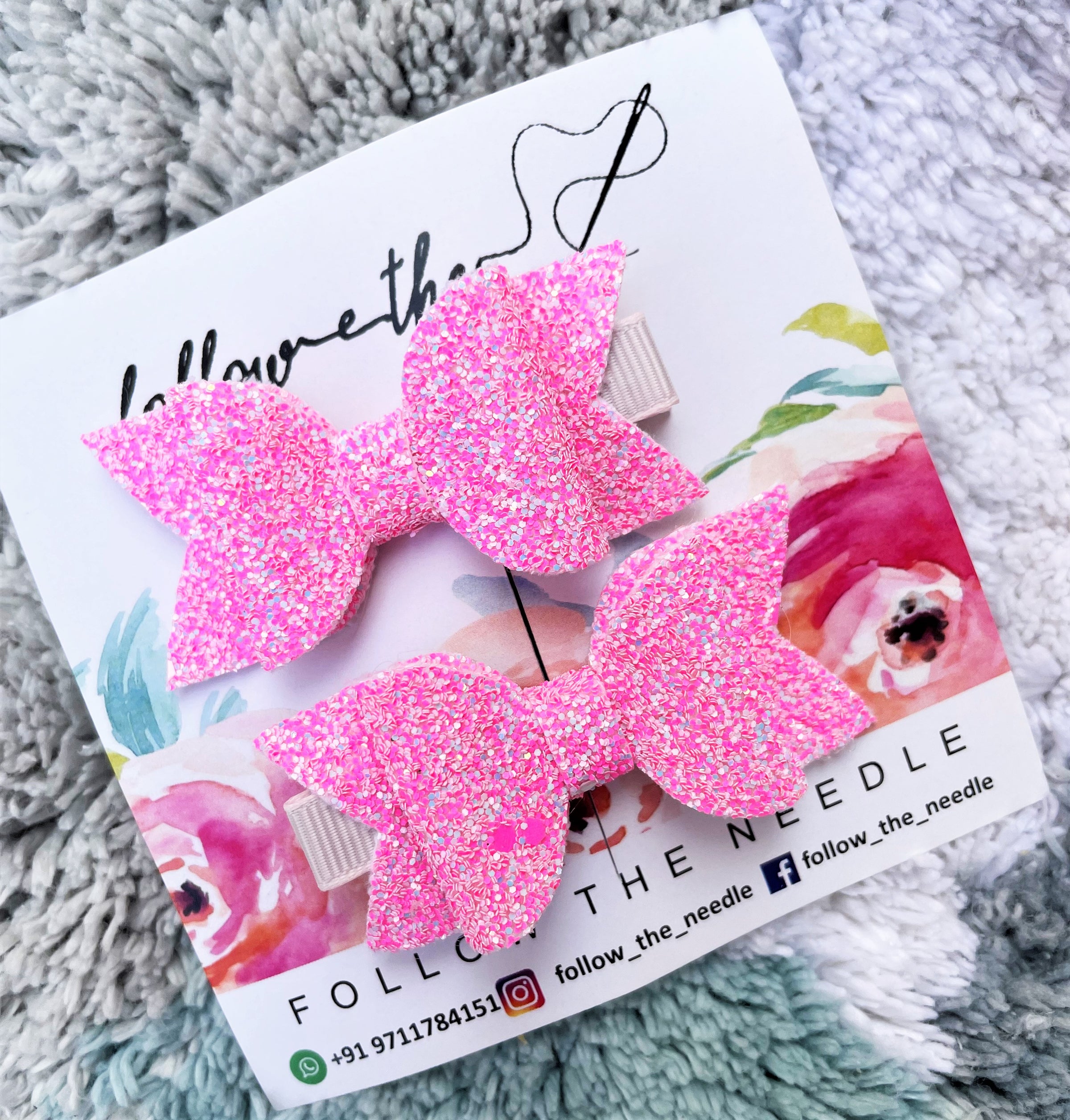 Description: Faux Leather Glitter Pair Bows Set of 2