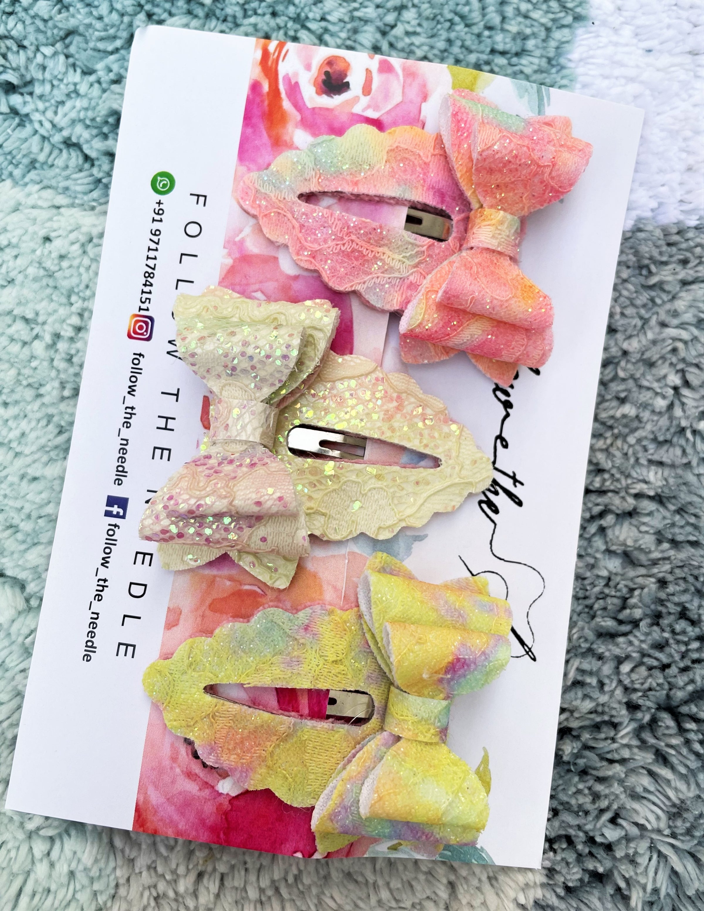 Description: Faux Leather Glitter Snap Pins Set of 3