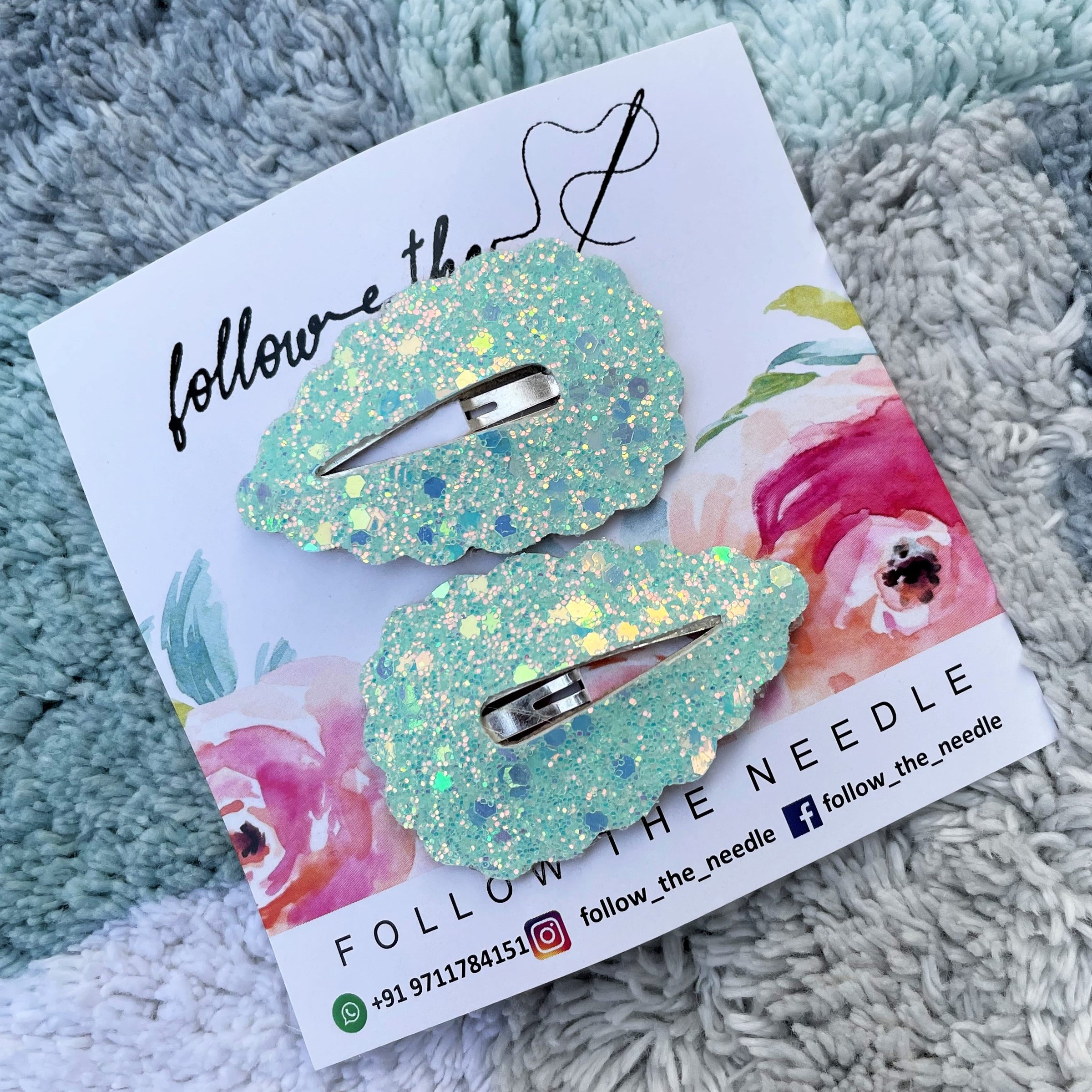 Description: Faux Leather Glitter Snap Pins Set of 2