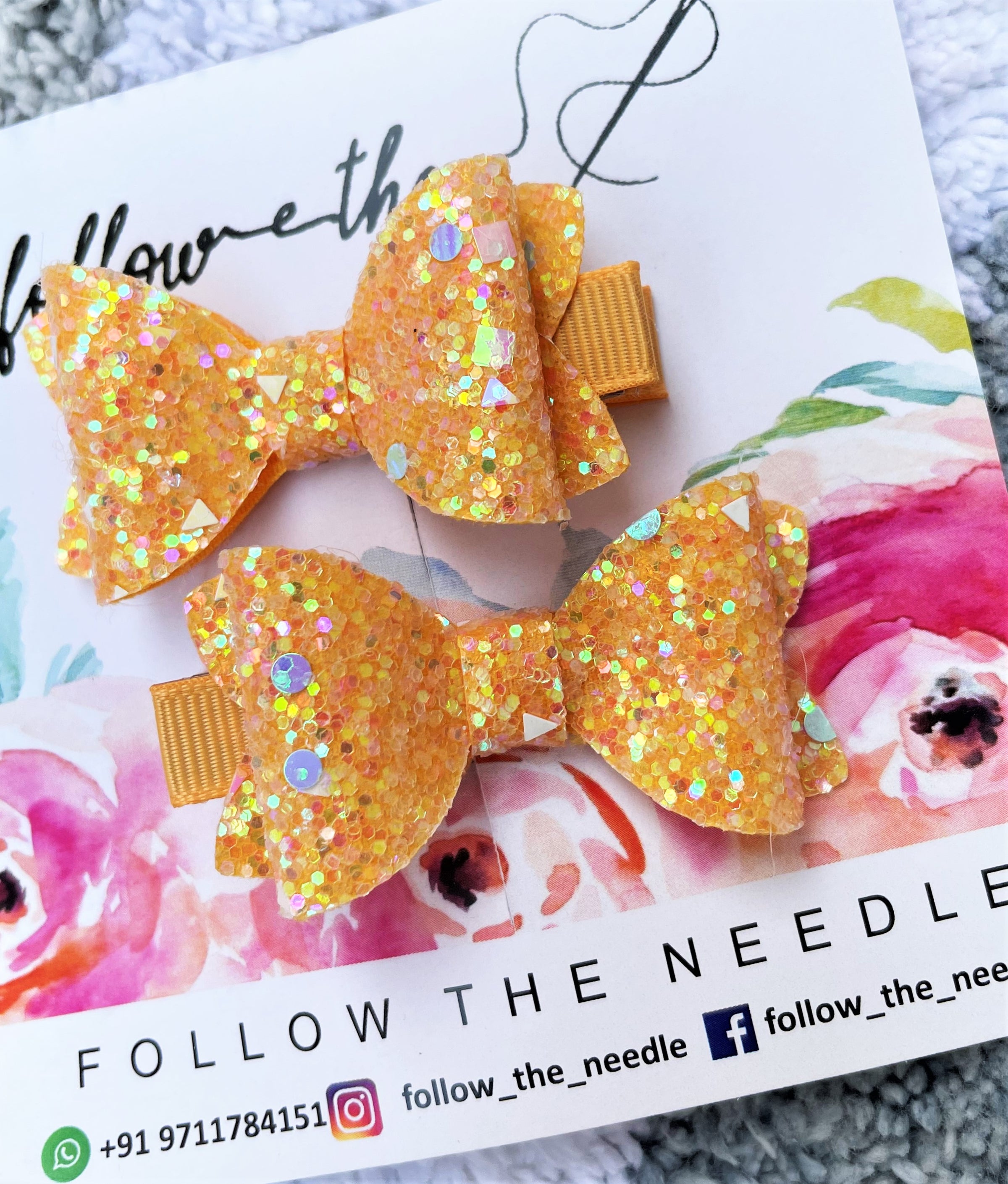 Description: Faux Leather Glitter Sprinkle Pair Bows Set of 2