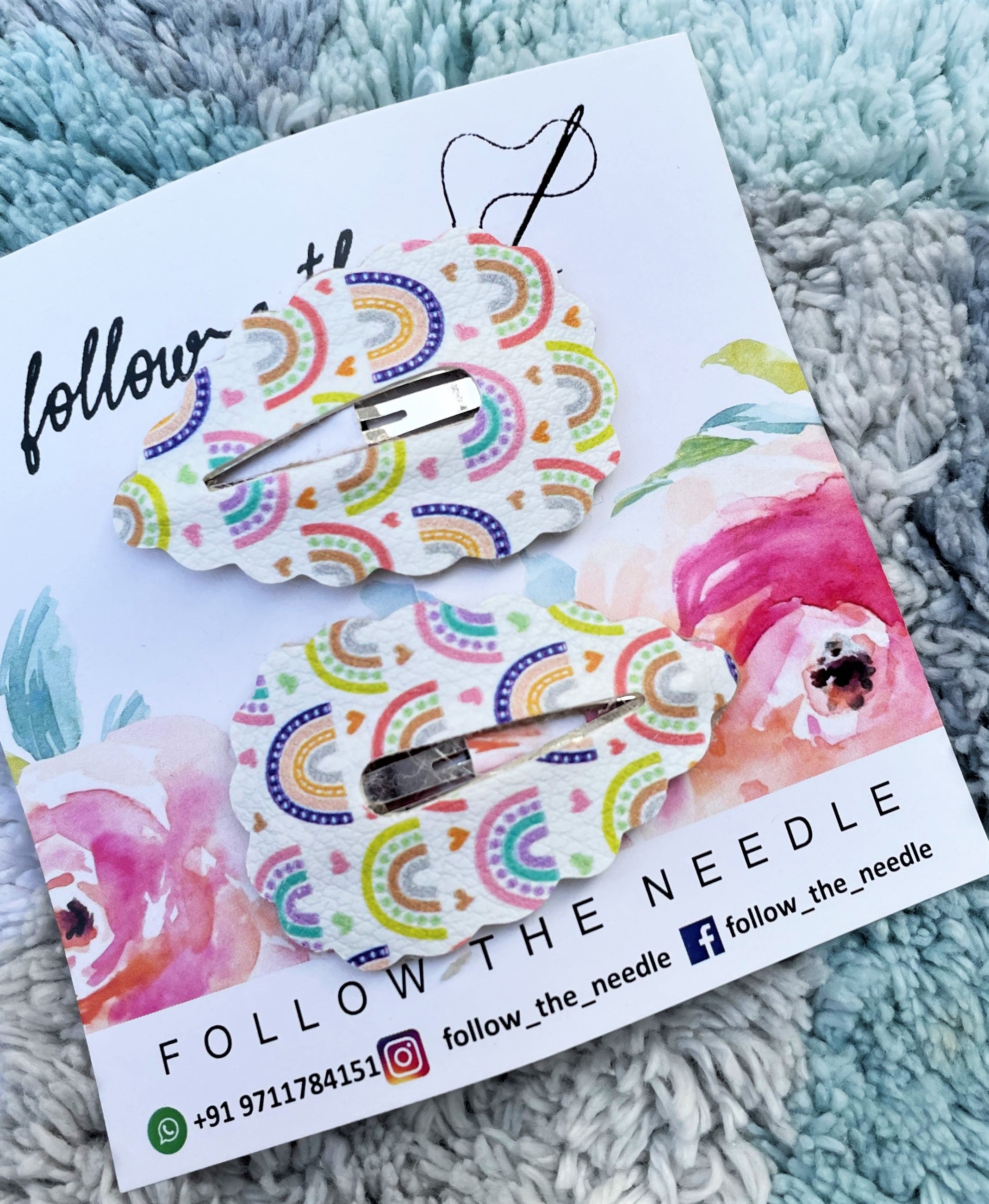Faux Leather Printed Rainbow Snap Pins Set of 2