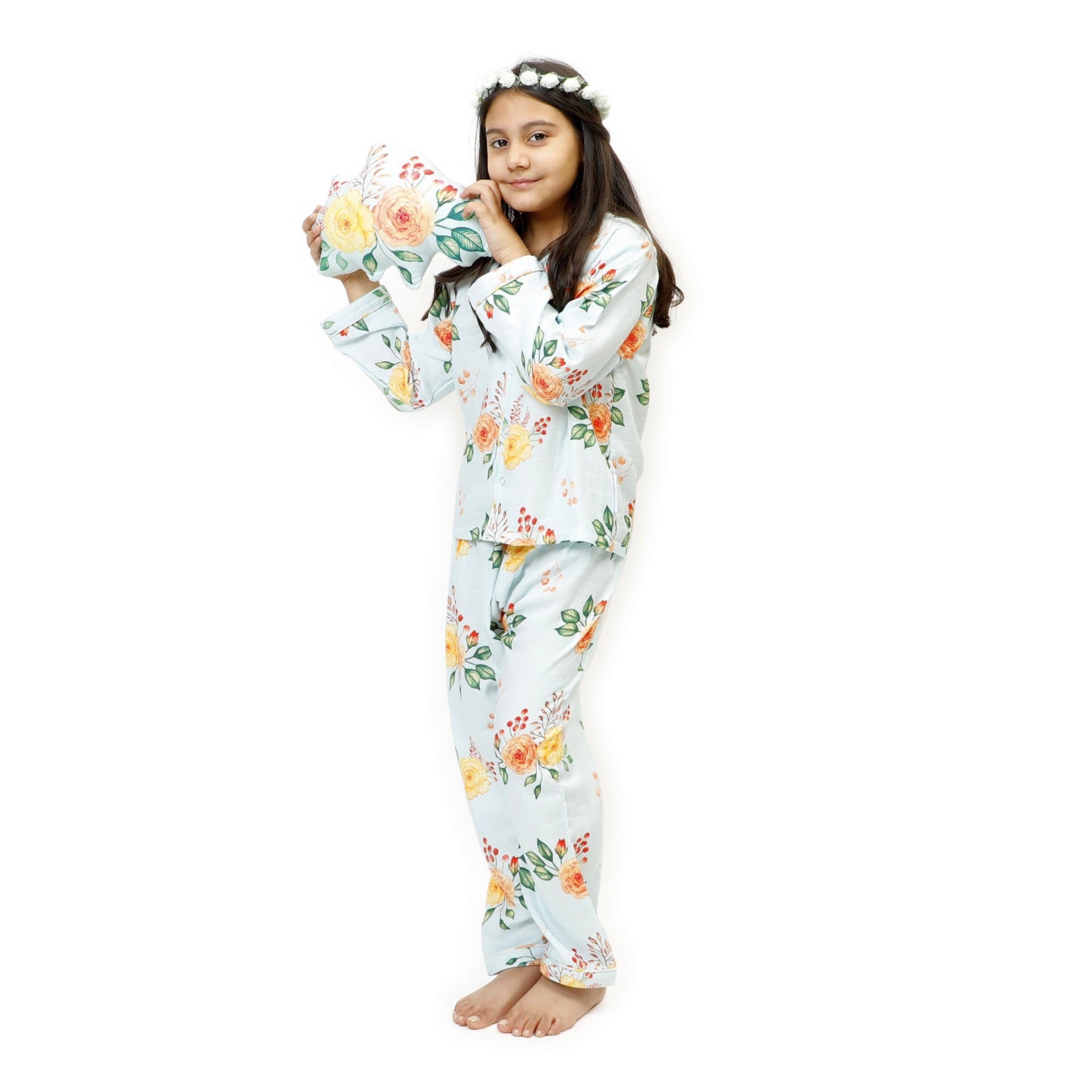 Our Bamboo Muslin night suit set is made with love and care using super soft and breathable bamboo muslin fabric. it’s thermo-regulating due to small micro gaps within the fabric which trap cool air in the summer and warm air in the winter. This helps to regulate temperature and is unique to bamboo muslin. It comes as a pajama set, with a full sleeve shirt that has a cute collar and a little pocket to hide all those tiny goodies. Our beautiful prints make it something that you want your baby to change into at every party. The material is not only super duper soft but is also breathable and super absorbent at the same time. The material is hypoallergenic and safe for your little darling. You are really going to wish that you have one for yourself too, don't believe us, try it once and we are sure you will be coming back for more.