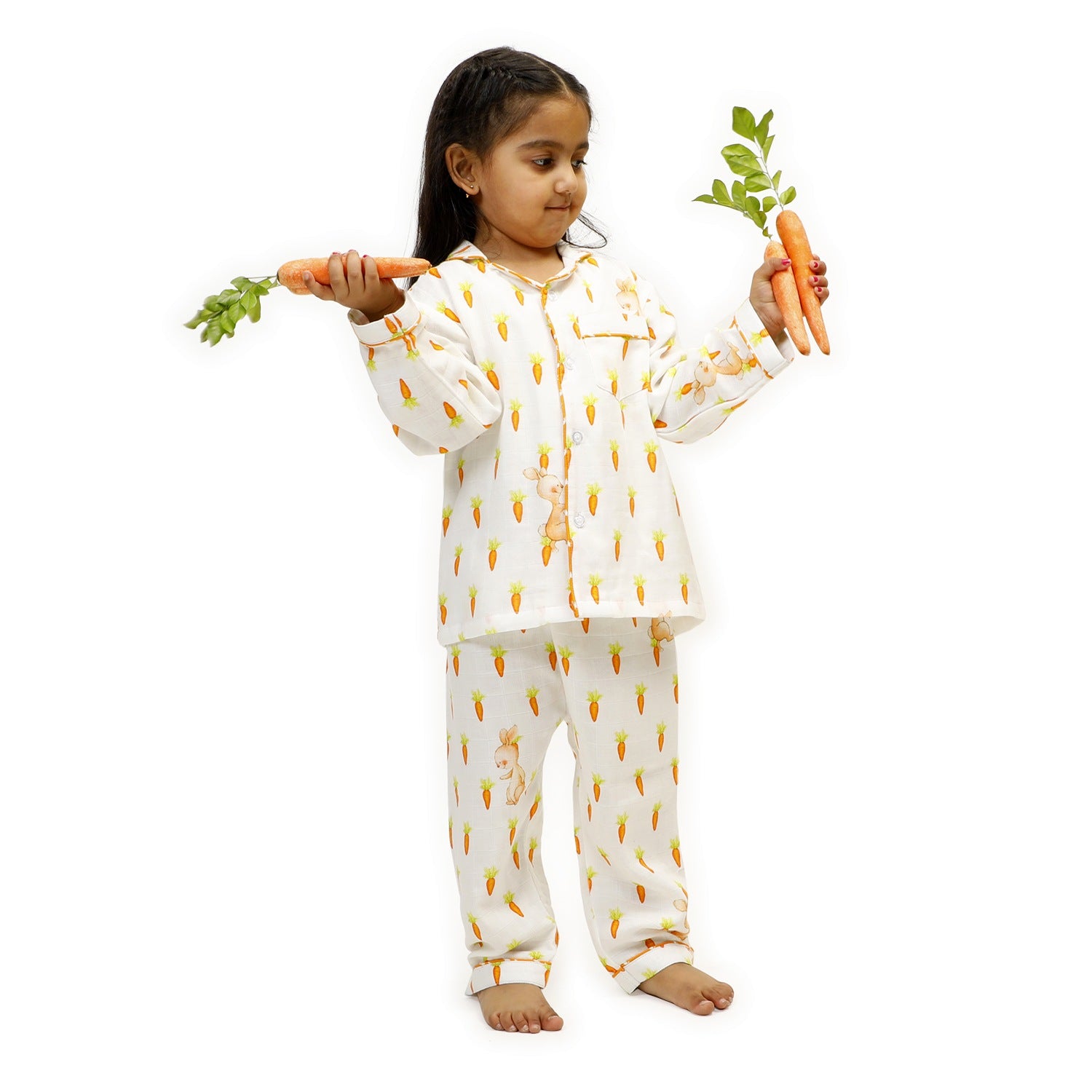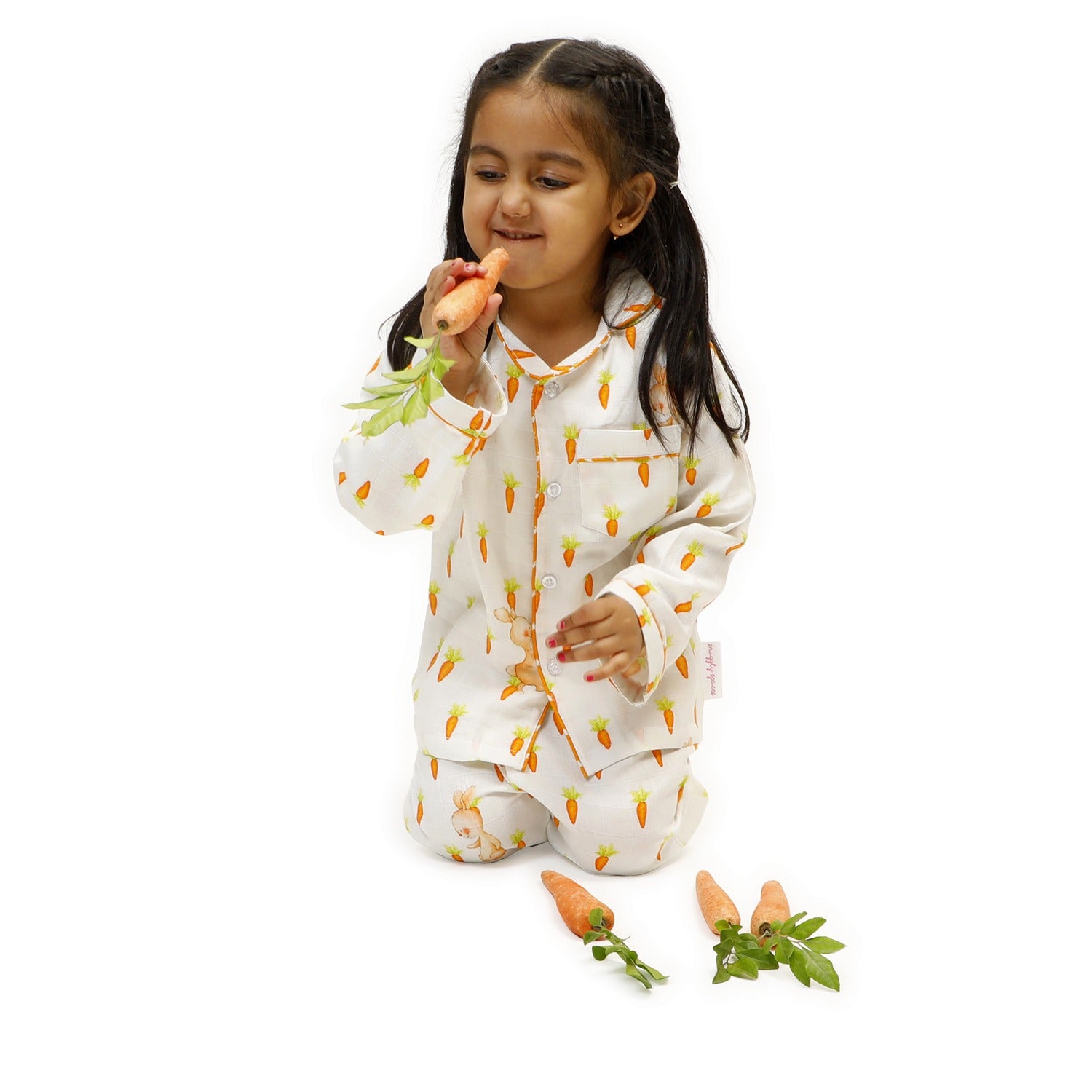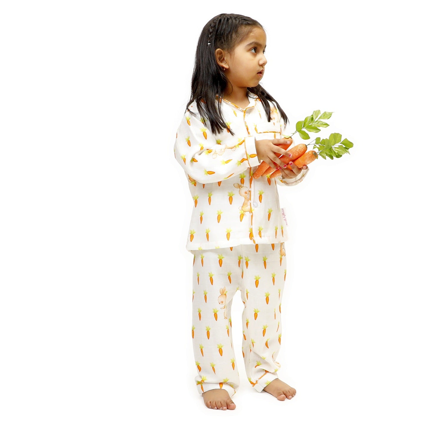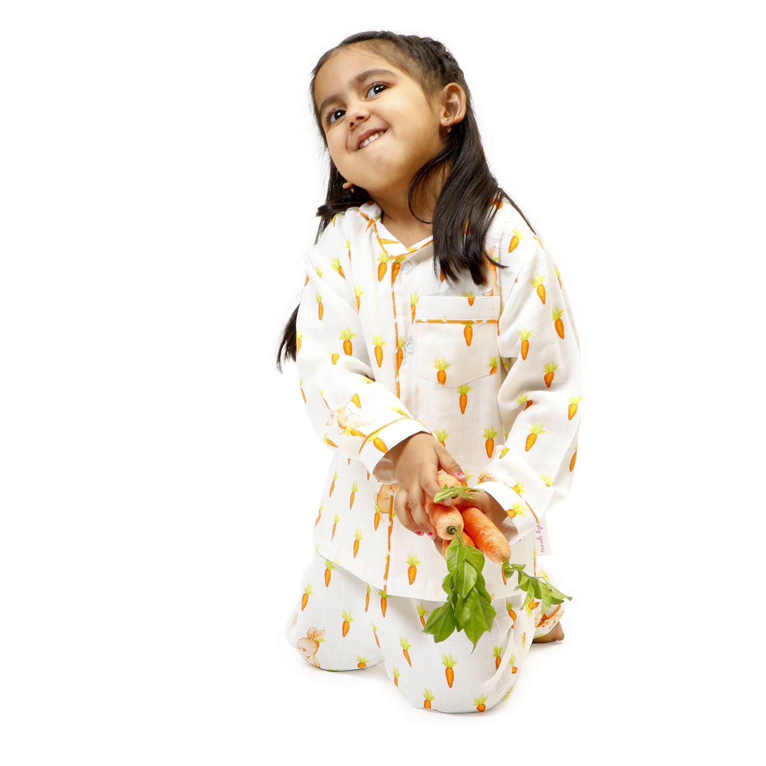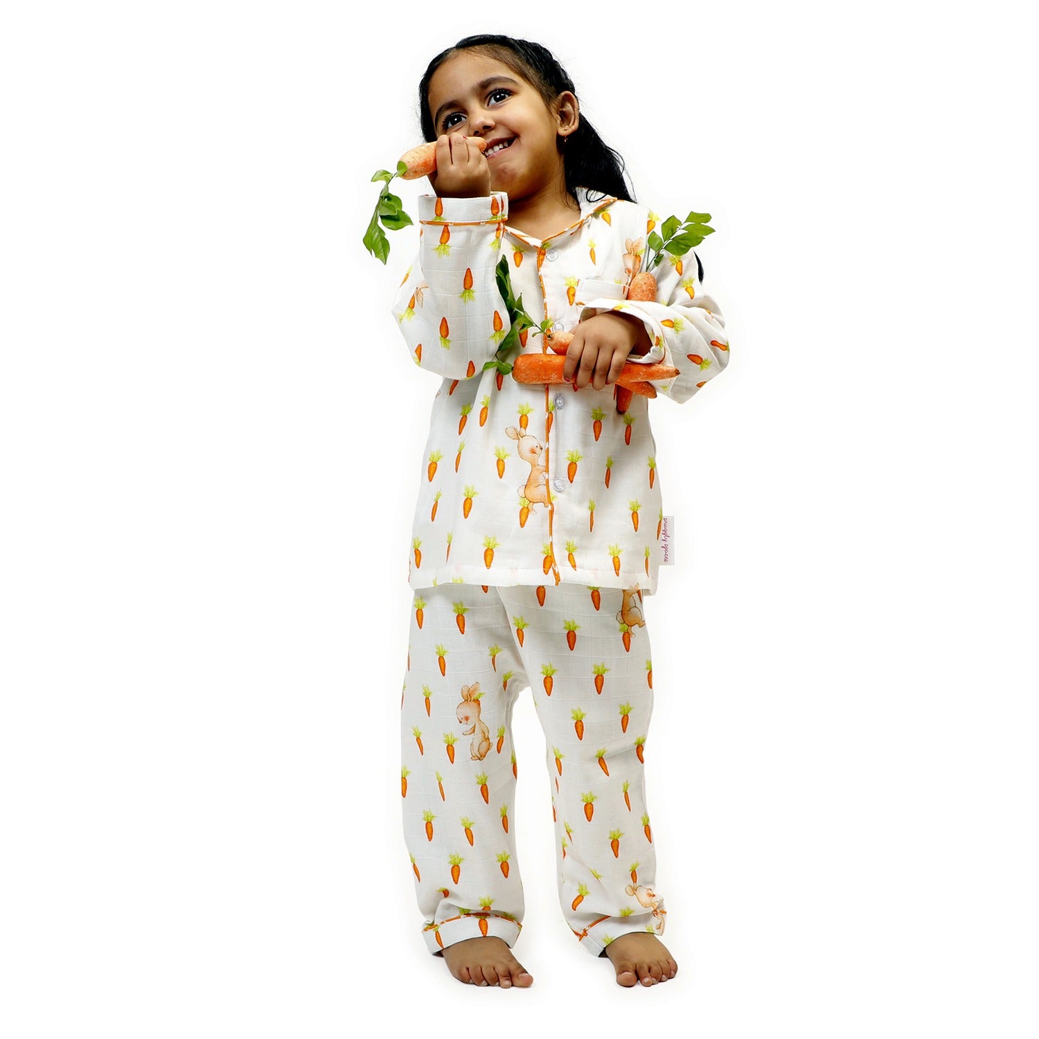 Our Bamboo Muslin night suit set is made with love and care using super soft and breathable bamboo muslin fabric. it’s thermo-regulating due to small micro gaps within the fabric which trap cool air in the summer and warm air in the winter. This helps to regulate temperature and is unique to bamboo muslin. It comes as a pajama set, with a full sleeve shirt that has a cute collar and a little pocket to hide all those tiny goodies. Our beautiful prints make it something that you want your baby to change into at every party. The material is not only super duper soft but is also breathable and super absorbent at the same time. The material is hypoallergenic and safe for your little darling. You are really going to wish that you have one for yourself too, don't believe us, try it once and we are sure you will be coming back for more.