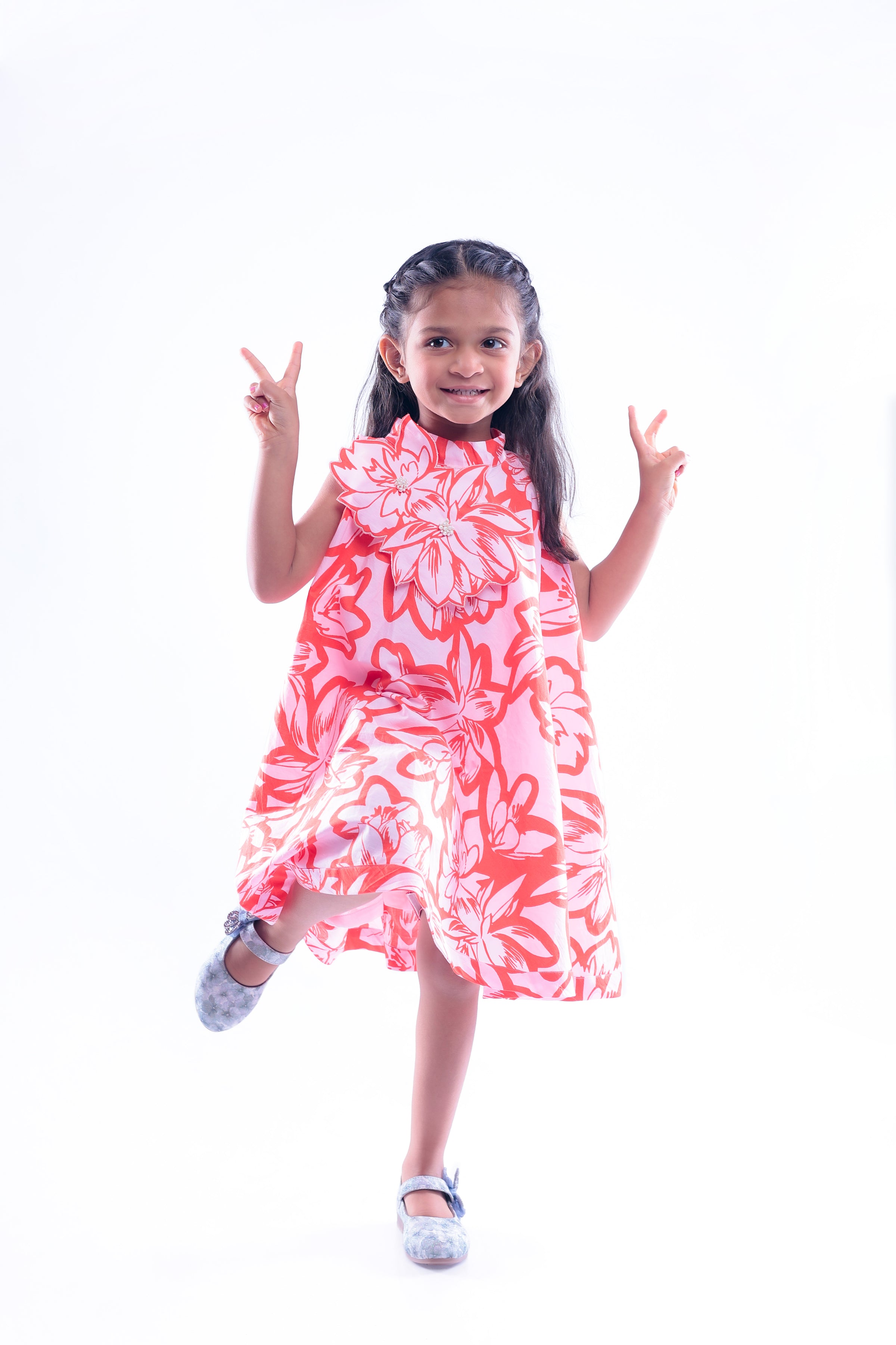 Get ready to bloom in this Red and Pink Floral Print Dress. Featuring a playful red and orange floral print and delicate cutwork in the front, this dress will make you stand out in any crowd. Made with love in India from soft cotton fabric, it's easy to care for with a convenient back zip closure. So go ahead, twirl and dance the day away in this sleeveless dress with a round collar.
