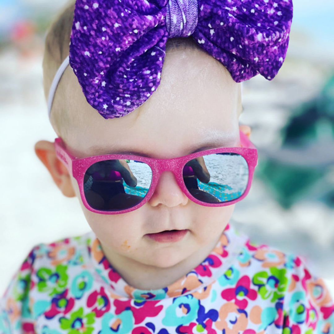 Zack and slater are definitely going to fight over Kelly (again) when they see her in these glittery pink baby wayfarer sunglasses. Jessie and Lisa are going to be so jealous! All Roshambo frames are proudly made in Italy and assembled in the United States. They are BPA, phthalate, lead & latex free, and small parts tested as safe for babies. Plus, they are virtually unbreakable...safety is our #1 priority - especially when it comes to children! All of our lenses offer UV400 protection to block 100% of UVA/B rays, and are also polarized to help reduce glare and eye strain. Nothing but the best for your family! Roshambo accessories are the perfect compliment to your sunglasses! Choose from a variety of different straps for the best fit, beach accessories, and carrying cases for your sunglasses.