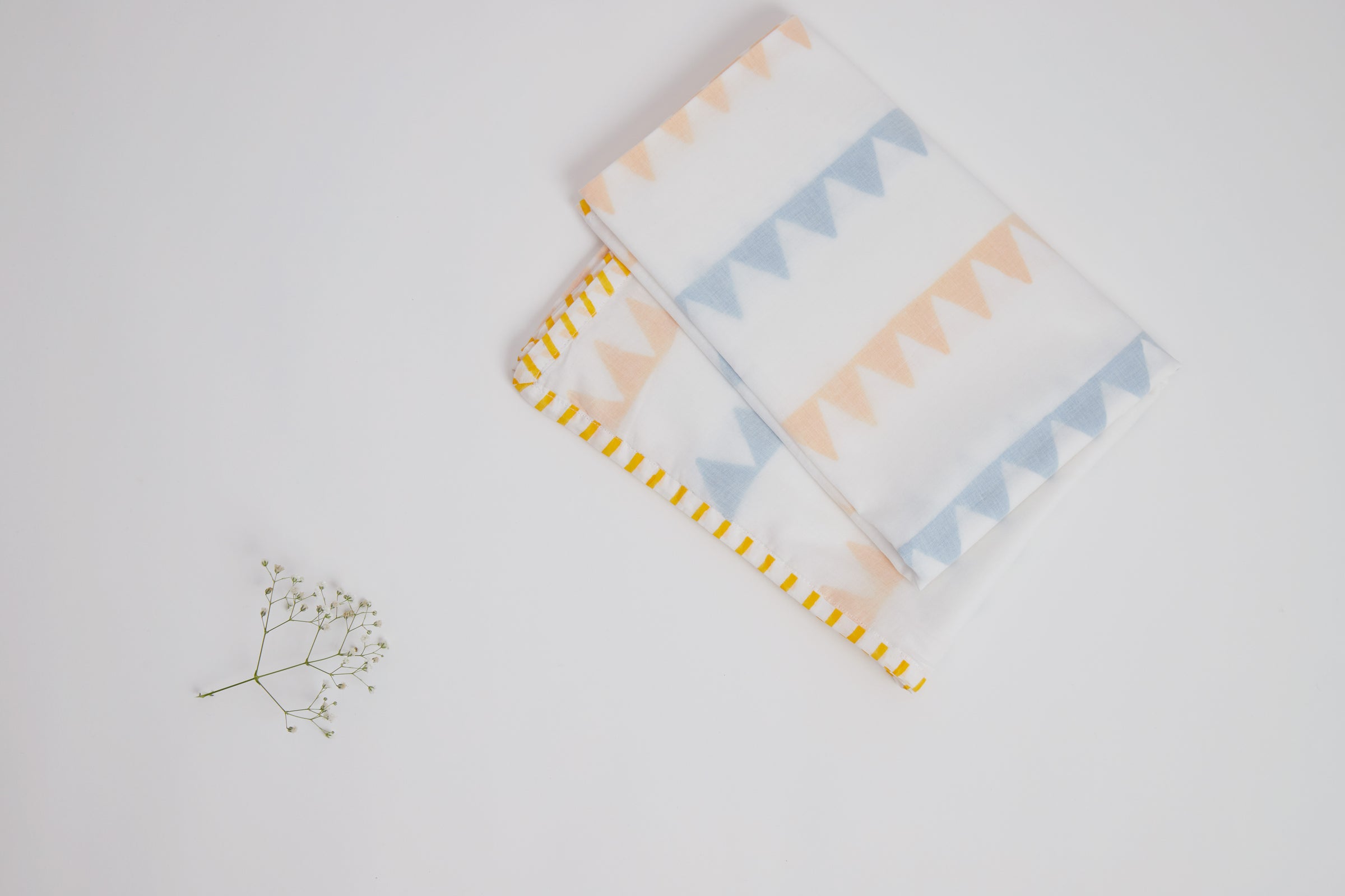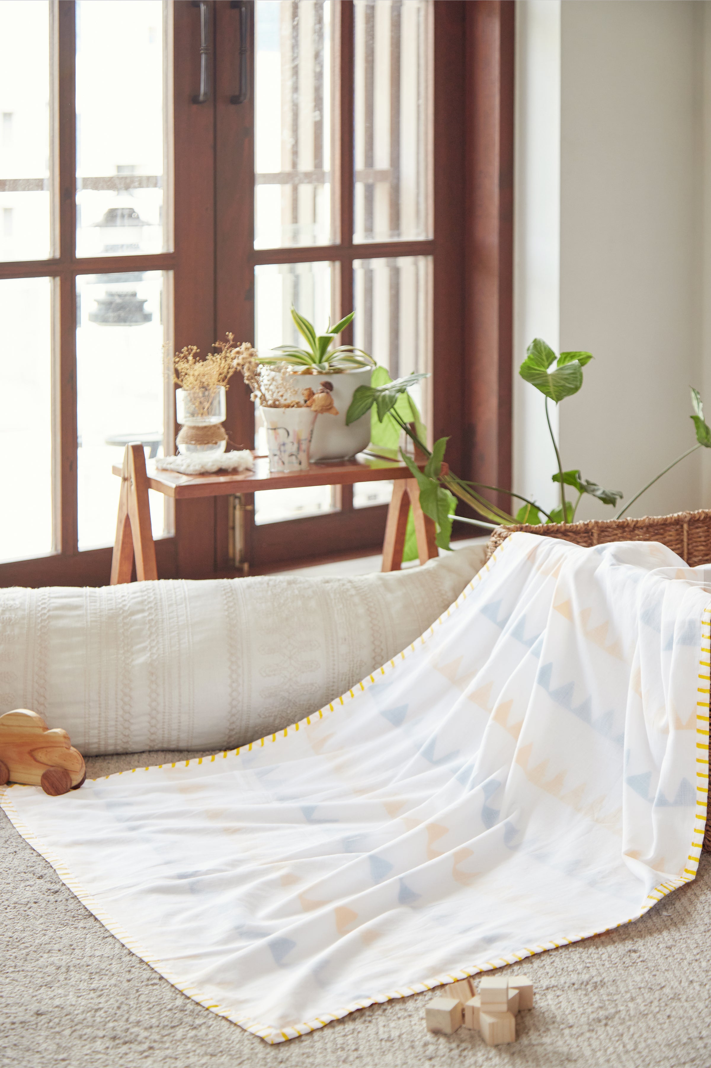 Tuck in your little one into the world of comfort. After all, he has had a long day of play with the giraffe. Our 3 layer muslin blanket is perfect to snuggle in all day long, and its geometric print makes it versatile and easy to carry on the go.